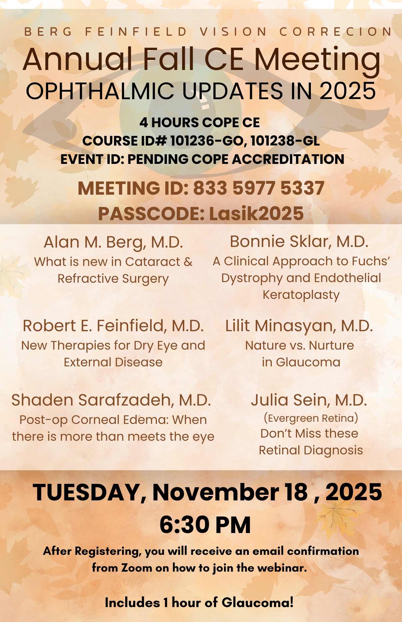 Berg Feinfield Vision Correction Annual CE Ophthalmic Updates in 2025